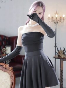 黒いガーターベルトがアクセントのオフショルダードレス姿がエロすぎて、Mっ気強めな変態オーラが漂う彼女♡